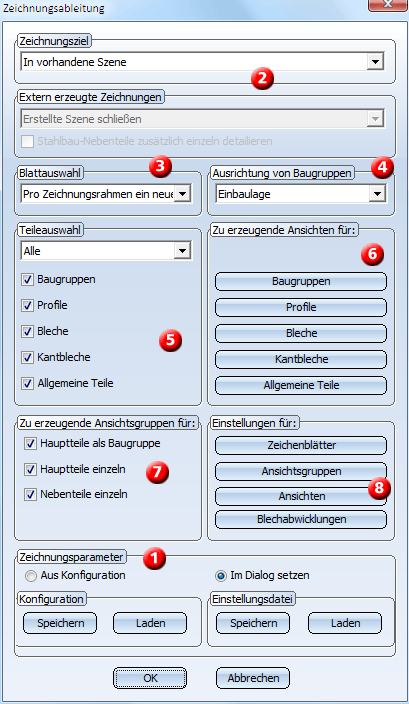 - Bestimmen Sie, welche Ansichten für Baugruppen, Profile, Bleche und Kantbleche erzeugt werden sollen.