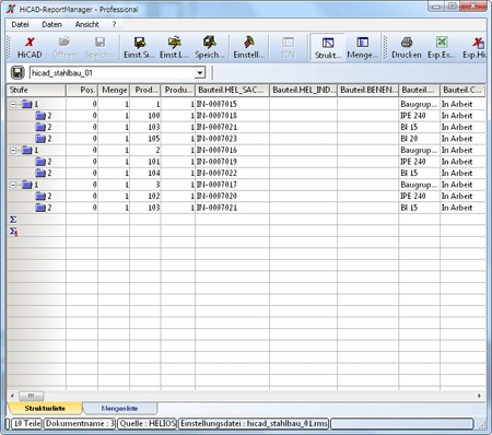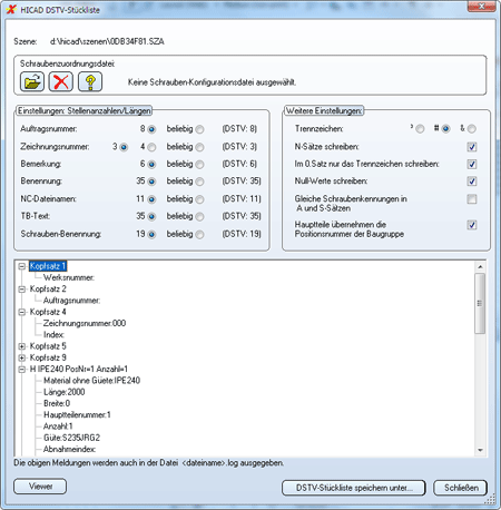 Um eine DSTV-Stücklistendatei zu erstellen, wählen Sie die Funktion Zeichnungsverwaltung > Fertigung >Fertigung/NC, DSTV-Stückliste