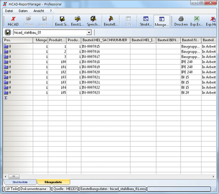 . Im Dialogfenster Stückliste wählen Sie dann die gewünschten Ausgabeoptionen. Mit einem Klick auf Schaltfläche Weiter wird die Stücklistengenerierung gestartet.