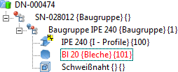 Im oben abgebildeten Beispiel ist aber nur die Baugruppe detailliert worden. Das bedeutet, nur die Baugruppe erhält die Verknüpfung "Zeichnung aktuell". Das Profil und das Blech erhalten die Verknüpfung "Ohne Zeichnung".