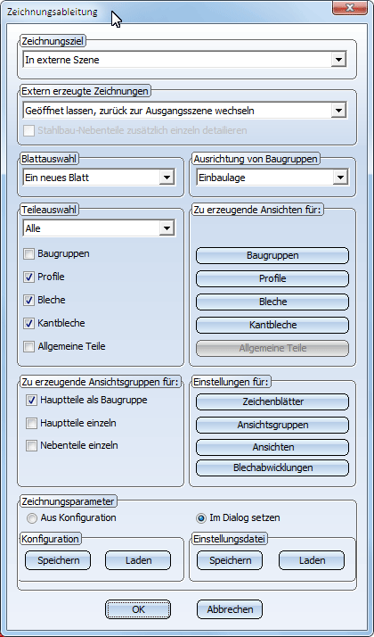 Ein typischer Anwendungsfall: eine Zeichnung mit Profilen und eine Zeichnung mit Brennteilen.