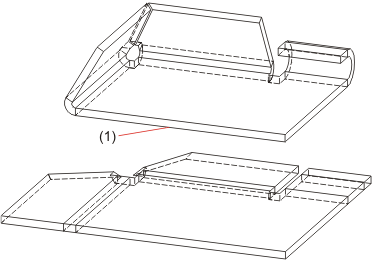 Mit der Funktion Biegesimulation können Sie komplette Blechkonstruktion in verschiedenen Ebenen auseinanderfalten, um sie zu bearbeiten (z.B. Bohren). Anschließend können Sie das Blech zurückbiegen. Sie können mehrere Bleche gleichzeitig auffalten. Identifizieren Sie nacheinander die Grundblech der Blechkonstruktionen.