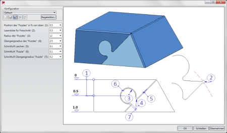 Ist der Einbau nach Auswahl der Kanten möglich, dann wird das Dialogfenster angezeigt.