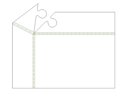 Die eingebaute Ecke in der 3D Ansicht und in der Abwicklung.