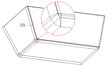 Diese Funktion schließt offene Ecken, die beim Ankanten von Blechlaschen entstehen. Dabei wird auch die Biegezone geschlossen.