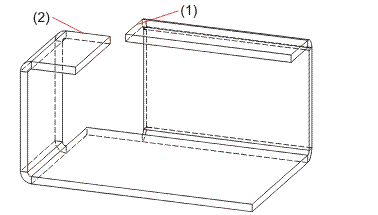 Laschen, die sich nicht überlappen, aber die gleiche Länge aufweisen, schneiden (erweitern) Sie mit dieser Funktion auf Gehrung. Die Laschen müssen sich in einer Ebene befinden.