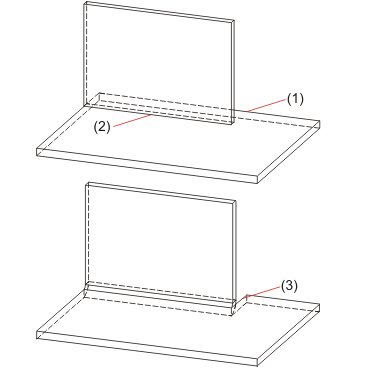 Mit dieser Funktion verbinden Sie nachträglich zwei Bleche durch eine Biegezone. Bei unterschiedlichen Blechtiefen wird automatisch ein Einschnitt vorgenommen. Die Blechtiefe des Bleches, an das angekantet wird, bleibt dadurch erhalten.