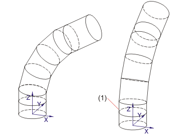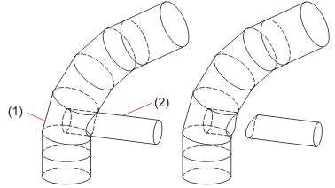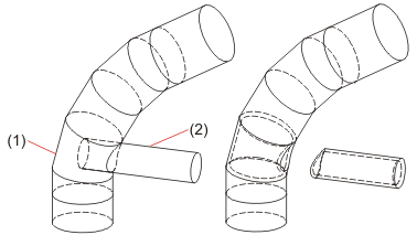 Mit der Funktion Offset können Sie der Rohrkonstruktion eine Blechdicke zuweisen. Sie können die Blechdicke nach innen oder nach außen abtragen.