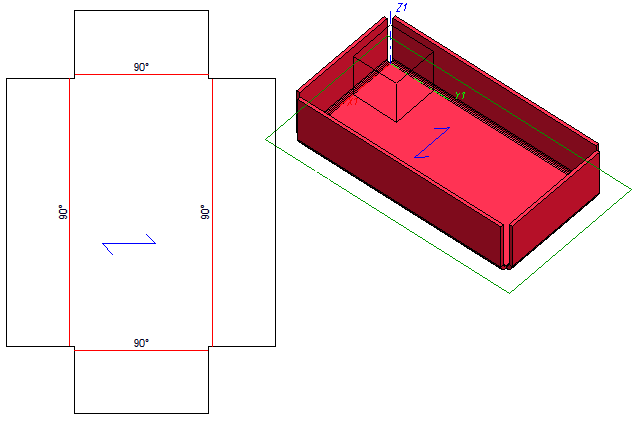 Wenn Sie bei einer Abwicklung statt des Grundbleches die automatische Abwicklung (rechte Maustaste) aktivieren, wird die Seite mit dem Bearbeitungsrichtungs-Symbol abgewickelt.