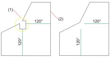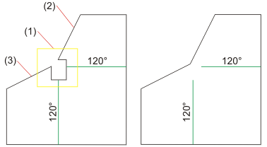 Die Ecke wird vereinfacht. Sie können nun weitere Abwicklungen bearbeiten oder die Funktion mit der mittleren Maustaste beenden. |