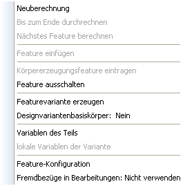 Wenn Sie im Kontextmenü die Einstellung Designvariantenbasiskörper von Nein auf Ja ändern, wird das Menü um Designvarianten-Funktionen erweitert: