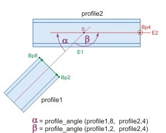 Syntax: profile_angle(profile 1,profile_point 1,profile 2,profile_point 2)