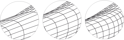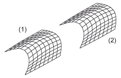 Links: Veränderung der 2. Fläche, Verfahren: krümmungstetig, Rechts: Veränderung der 2. Fläche beider Flächen, Verfahren: stetig