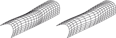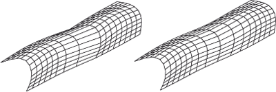Zwei unbeschnittene Freiformflächen können mit dieser Funktion stetig miteinander verbunden werden.