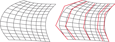 Links: Ausgangsfläche , Rechts: Freiformfläche mit Gerüst