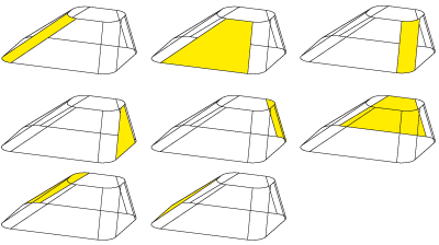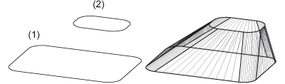 Mit dieser Funktion erzeugen Sie Übergangsteile zwischen zwei Kurven. Diese Kurven können Bestandteil einer 3D-Skizze sein oder Randkurven von Solids oder Flächenteilen. Im Unterschied zur Funktion Übergangsteil verbinden können Sie hier keine Anschlussbedingungen vergeben. Die beiden identifizierten Randkurven werden linear miteinander verbunden. Zu je zwei verbundenen Kanten entsteht dabei eine Freiformfläche vom Typ B-Spline oder NURB. Die verschiedenen Freiformflächen haben je vier Kanten und sind topologisch nicht miteinander verbunden.
