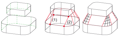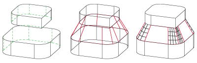 Die Abbildungen zeigen ein Übergangsteil - ohne Anschlussbedingungen - zwischen den Randkurven zweier Solids.