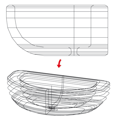 In der folgenden Abbildung ist aus dem entstandenen Gerüst eine Freiformfläche abgeleitet worden.