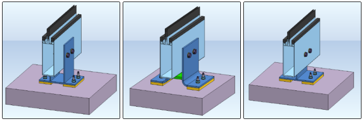 Mit dieser Designvariante können Sie Fassadenpfosten an Baukörper befestigen. Die Variante kann nicht nur für Aluminium-Fassadenprofile, sondern auch für Stahlprofile verwendet werden.