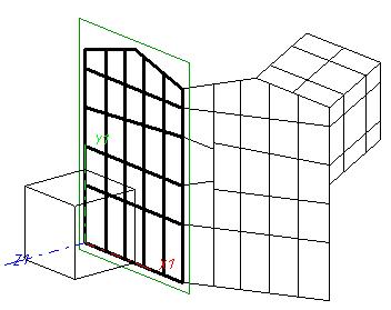 Die Besonderheit an der Funktionalität des 3D-Achsrasters ist, dass einer sozusagen "vorgezeichneten" Fassadenkontur aus aneinandergesetzten Skizzen mit nur wenigen Mausklicks die gewünschten Elemente der Verglasungskonstruktion zugewiesen werden können.