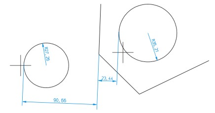 Wird ein Abstand zwischen zwei Linien definiert, werden diese gleichzeitig parallel ausgerichtet. Achten Sie ggf. darauf, dass die gewünschte Bezugsrichtung durch die Angabe anderer Bedingungen erhalten bleibt. Der Abstand zwischen einem Kreis(bogen) und einem Punkt bzw. einer Linie hängt vom Identifizierungspunkt des Kreises ab.