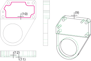 Sie das 3D-Modell (9) und dann die Ausnehmungskontur (10) in der Vorderansicht.