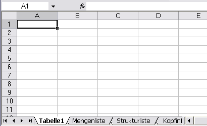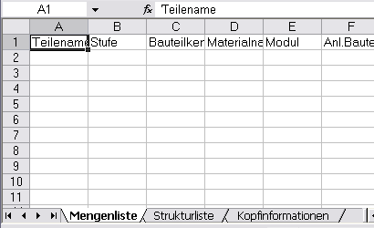 dann bereits die Tabellen MENGENLISTE, STRUKTURLISTE und KOPFINFORMATIONEN.
