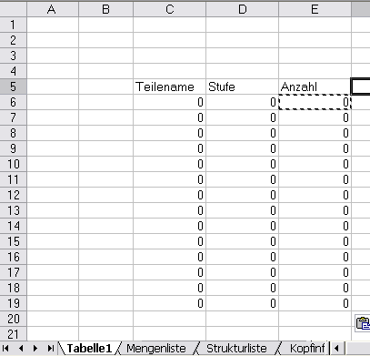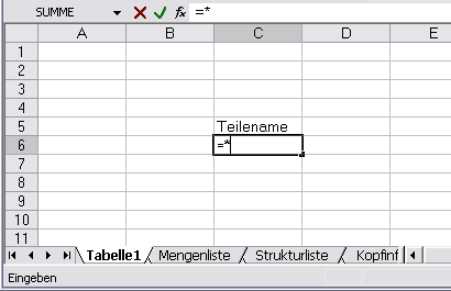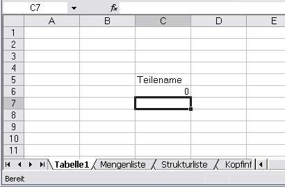 den Mauszeiger auf die Zelle unterhalb des Feldes Teilename.