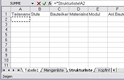 - Setzen Sie dazu den Mauszeiger auf die Zelle unterhalb