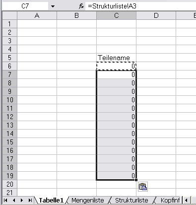 - Kopieren Sie die Zelle mit dem Wert 0 (Mauszeiger