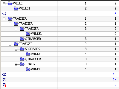 Die sichtbaren Einträge aller Stufen werden summiert (z.B. Stahlbau-