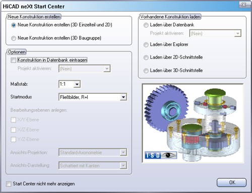 Um ein neues Projekt anzulegen, aktivieren Sie die Option Neue Konstruktion erstellen, zum Laden eines bereits vorhandenen Projektes die Option Vorhandene Konstruktion laden.
