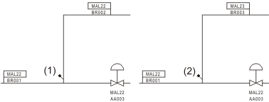 Das KKS-Rohrleitungs-Trennsymbol wird verwendet, um Symbole oder Verbindungen, die zu Rohrleitungen mit unterschiedlichen Bezeichnungen gehören, voneinander zu trennen. Das Symbol zeigt außerdem an, ob sich die Rohrleitungen im Funktionsgruppenschlüssel innerhalb der KKS-Kennzeichnung unterscheiden. Sind die Funktionsgruppenschlüssel unterschiedlich, wird der Nadelkopf des Symbols nicht ausgefüllt. Sind die Funktionsgruppenschlüssel gleich, wird der Nadelkopf ausgefüllt.