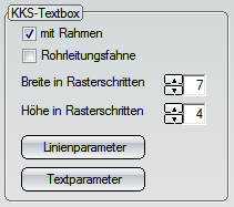 Hier haben Sie die Möglichkeit, die Eigenschaften der KKS-Text-Boxen festzulegen. Dies sind rechteckige Kästchen, die im Fließbild neben den Symbolen stehen und in die Symbolkennzeichnung geschrieben werden.