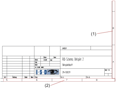 Die gewählte Zahl legt fest, in wie viele gleich breite Abschnitte die vertikale Koordinatenachse unterteilt werden soll. Ausgehend vom oberen Blattrand werden die Abschnitte im Zeichnungsrahmen mit A, B, C usw. beschriftet.