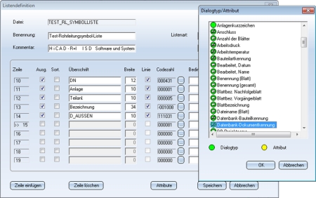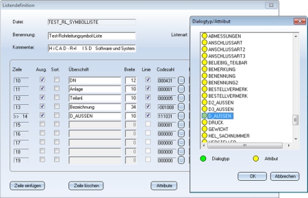 Auf diese Attribute kann bei der Generierung einer Rohrleitungssymbolliste zugegriffen werden. Eine Listendefinition, die den Außendurchmesser als Spalte definiert, sieht zum Beispiel so aus:
