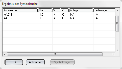Die nach Auswertung des Bedingungs-Dialogs angezeigte Ergebnisliste darf keine Symbole enthalten, die nicht auch in der internen Liste enthalten sind.