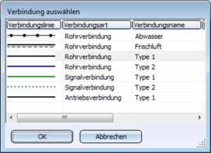 Bei den beiden Funktionen erscheint zunächst eine Liste der definierten Verbindungstypen. Wählen Sie mit Doppelklick den gewünschten Verbindungstyp aus.