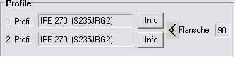Unter Profile werden Informationen zu den zuvor identifizierten Profilen angezeigt, z.B. die Art des Profils, die Steg- und Flanschrichtung. Über die Schaltfläche Info lassen sich weitere Informationen zu den Profilen einblenden.