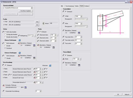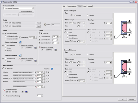 Diese Registerkarte enthält Eingabefelder und Grafiken weiterer Anschlusskomponenten wie Unterlegbleche, Stegverstärkungen etc.