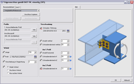 Andockfenster Bauwesen-Funktionen > Stahlbau > Anschlüsse > Stirnseite an Steg-/Flanschseite > DAST IW , einseitig (305)