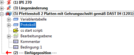 - Platten, Vouten- und Flanschbleche werden mit dem anzuschließenden Profil zu einer Baugruppe zusammengefasst, alle anderen Komponenten mit dem Profil, an das angeschlossen wird.