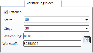 Geben Sie die Breite und Länge der Verstärkungsbleche an und wählen Sie durch einen Klick auf das Symbol