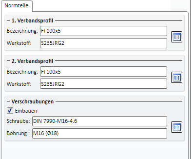 Zulässige Profiltypen sind U- und L-Profile sowie Flachstähle. Durch einen Klick auf das Symbol