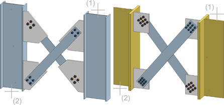 Mit dieser - auf einer Designvariante basierenden - Funktion lassen sich zur Aussteifung zwischen zwei vorhandene Stützen Kreuzverbände einbauen.