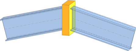 Diese Funktion verbindet zwei Profile durch eine geschweißte Platte, die sowohl bündig abschließen als auch oben, unten oder seitlich überstehen kann. Falls erforderlich werden die Profile automatisch verkürzt, verlängert und/oder auf Gehrung geschnitten.