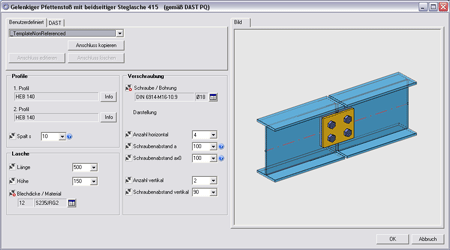 Andockfenster Bauwesen-Funktionen > Stahlbau > Anschlüsse > Stirnseite an Stirnseite > Laschen > DAST PM (405)