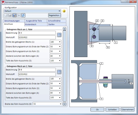Andockfenster Bauwesen-Funktionen > Stahlbau > Anschlüsse > Stirnseite an Steg-/Flanschseite > Rohranschluss (1502)