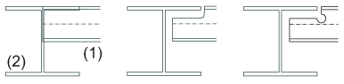 Mit den Funktionen unter Ausklinken schließen Sie ein Profil an ein anderes Profil an. Dabei wird das anzuschließende Profil mit einer Ausklinkung versehen. Dies kann mit oder ohne Verlängerung des anzuschließenden Profils erfolgen.