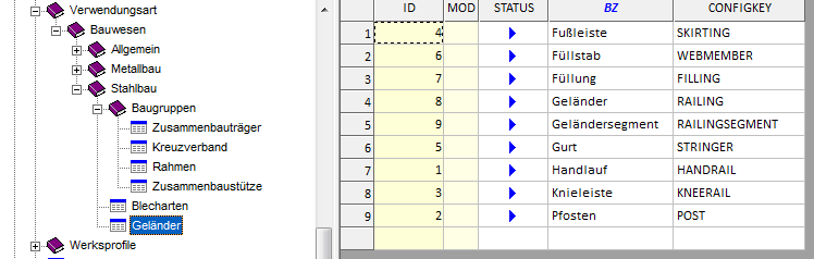 Die Verwendungsarten sind im HiCAD Katalog Werksnormen definiert. Jeder Verwendungsart ist dort ein Konfigurationsschlüssel (CONFIGKEY) zugeordnet.